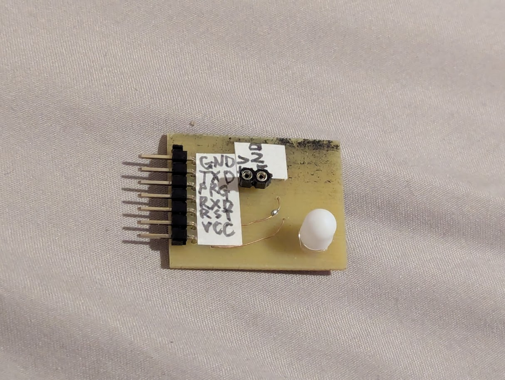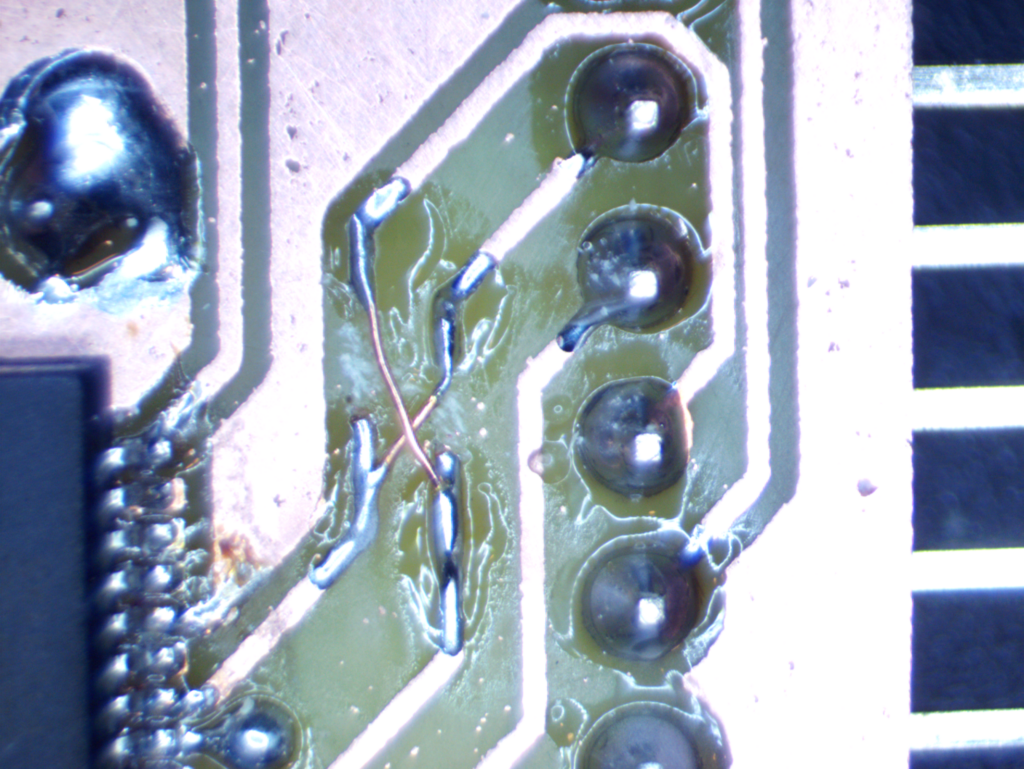 当初、部品を付けてUSBでのデバイス認識をしたのにTWE-Liteを認識せず、何がおかしいのかと思ったらRXDとTXDが逆だった。仕方ないのでカッターでパターンを削り、UEWで配線し直したらうまくいった。