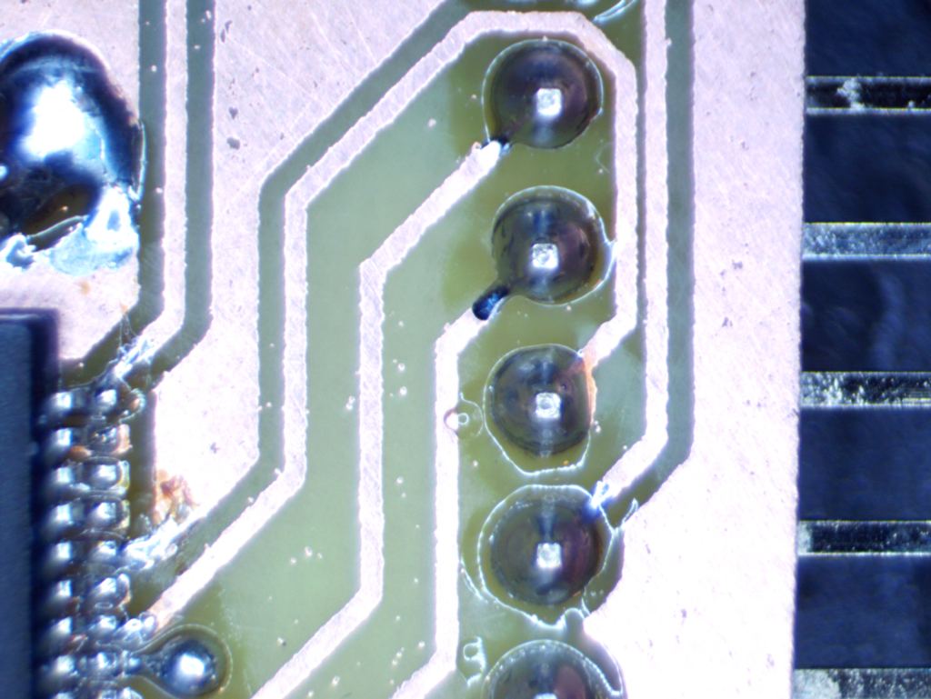 手直ししたいときにレジストを除く手間が無いのは銅箔剥き出しの数少ない利点かもしれない。