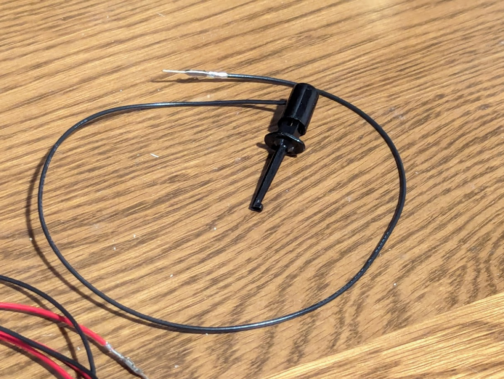 ICクリップとピンコネクタでケーブルを作った。全部で15本ほど。これで基板のデバッグが捗る。